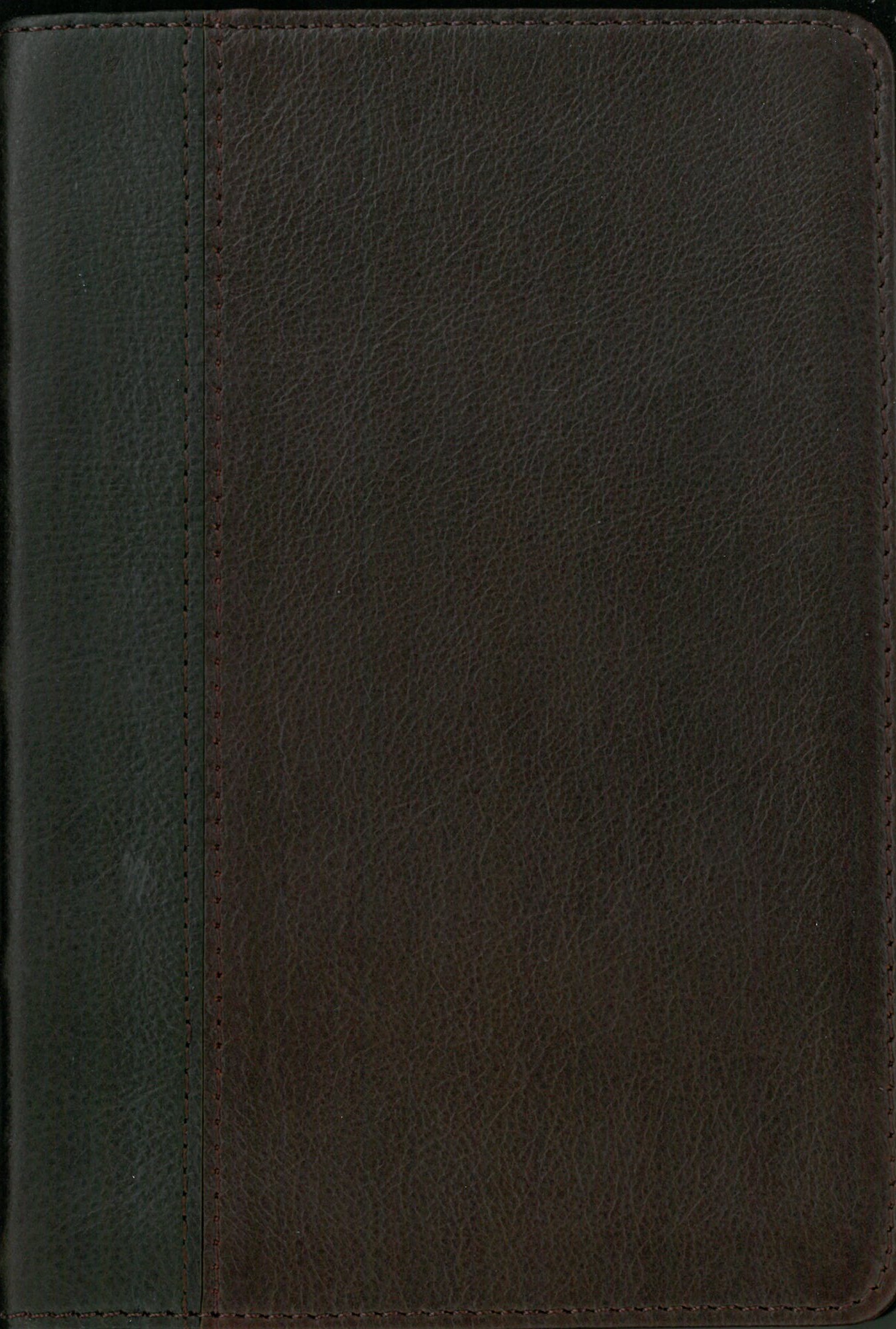 Genuine Leather. Brown with a darker brown leather wrap on the spine. 7-point type, words of Christ in red, topical subheadings throughout the chapters, maps. A limited topical index is included. Page size is 6 1/4 x 4 1/4; thickness is 1 inch.