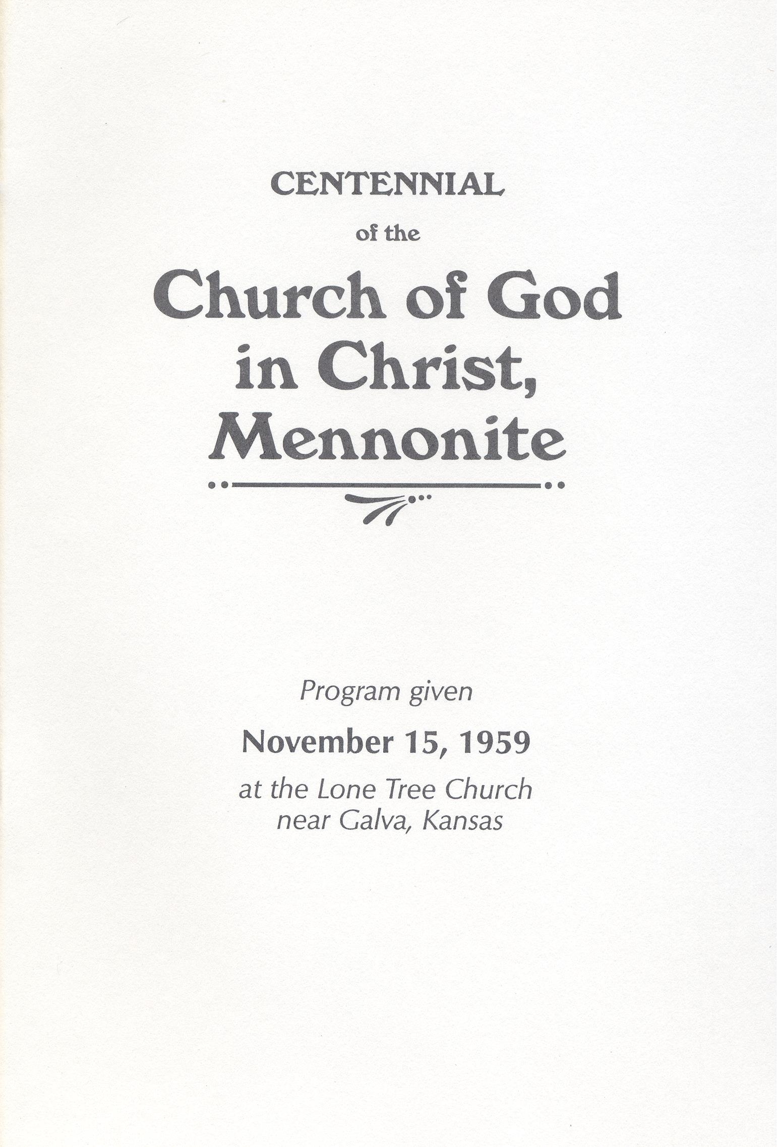 A session of the 1959 General Conference was dedicated to a centennial observance of the founding of the Church of God in Christ, Mennonite. Numerous speakers addressed the development of the church from various aspects. 40 pages; paper.