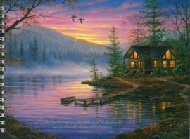 Faith View Creations. A wheat field on an off-white background, with copper wire-binding. 60 lined sheets for writing on both sides. Page size is 8 x 6 1/4 in.