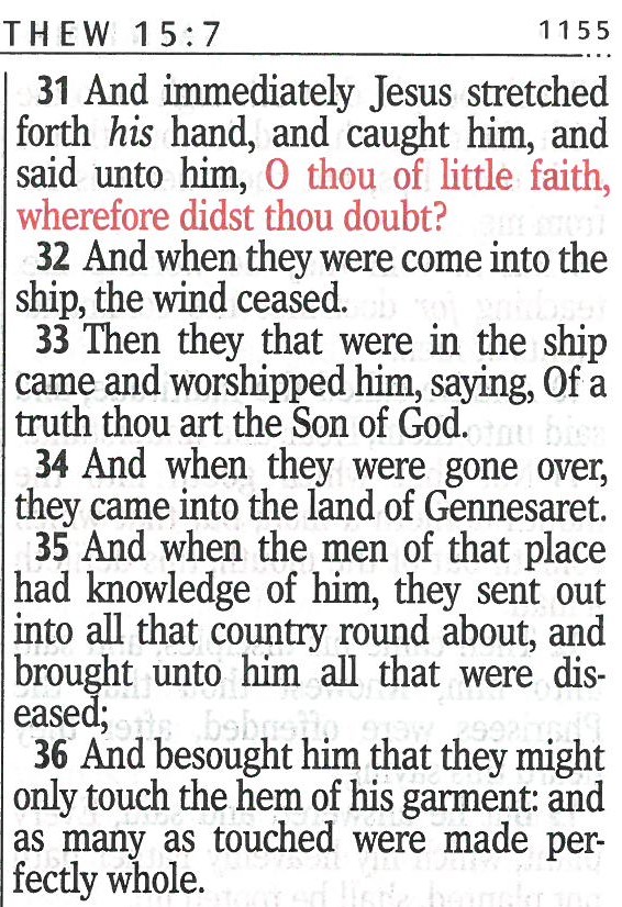 A compact Bible featuring an aqua imitation leather cover and gold page gilding. Embossed designs on front and spine, as well as “Holy Bible” imprinted in gold. Words of Christ in red, ribbon marker, maps, limited concordance. No references. 10 point type. Page size is 6 1/4 x 4 1/4; thickness is 1 3/8 inches.