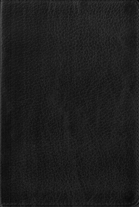 Genuine Leather. Black. 7-point type, words of Christ in red, topical subheadings throughout the chapters. Maps and a limited topical index are included. Page size is 6 1/4 x 4 1/4; thickness is 1 inch.