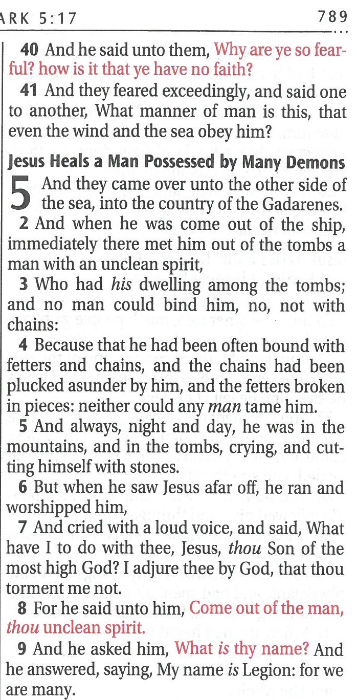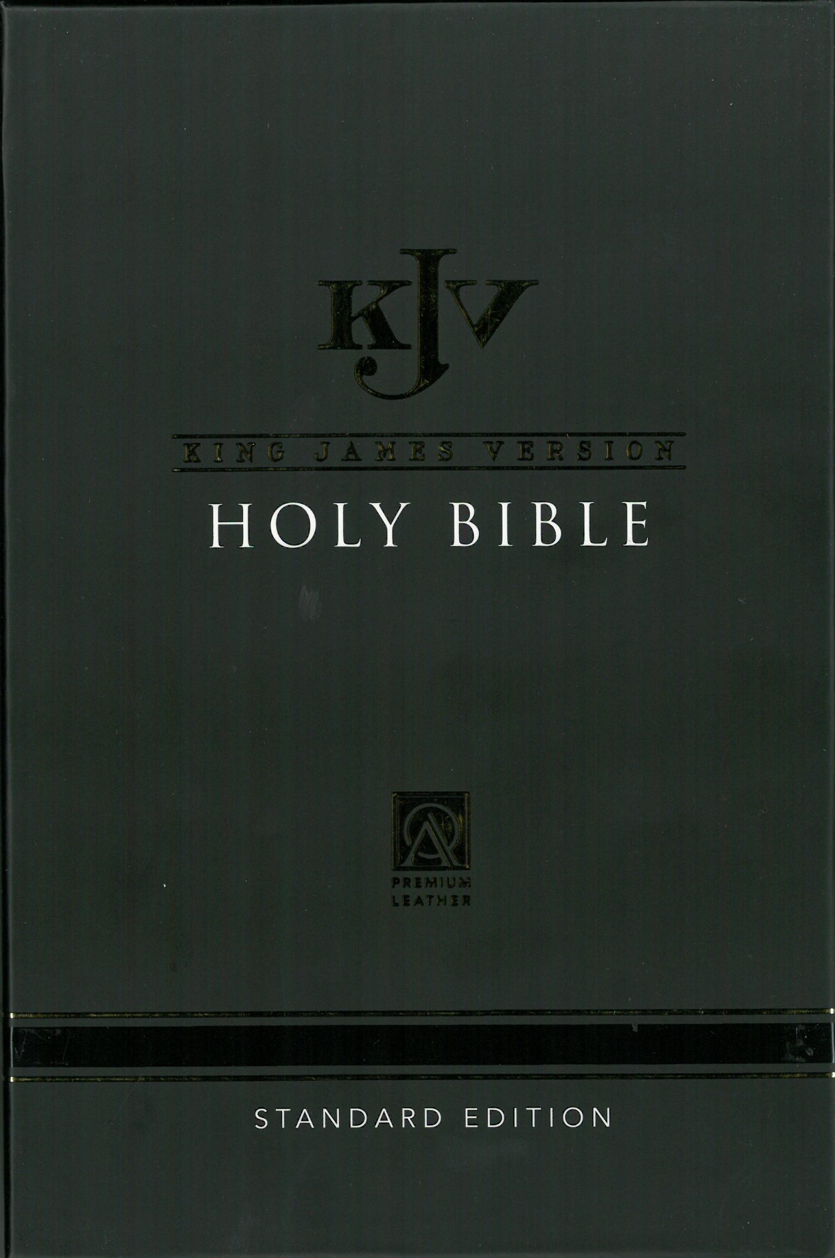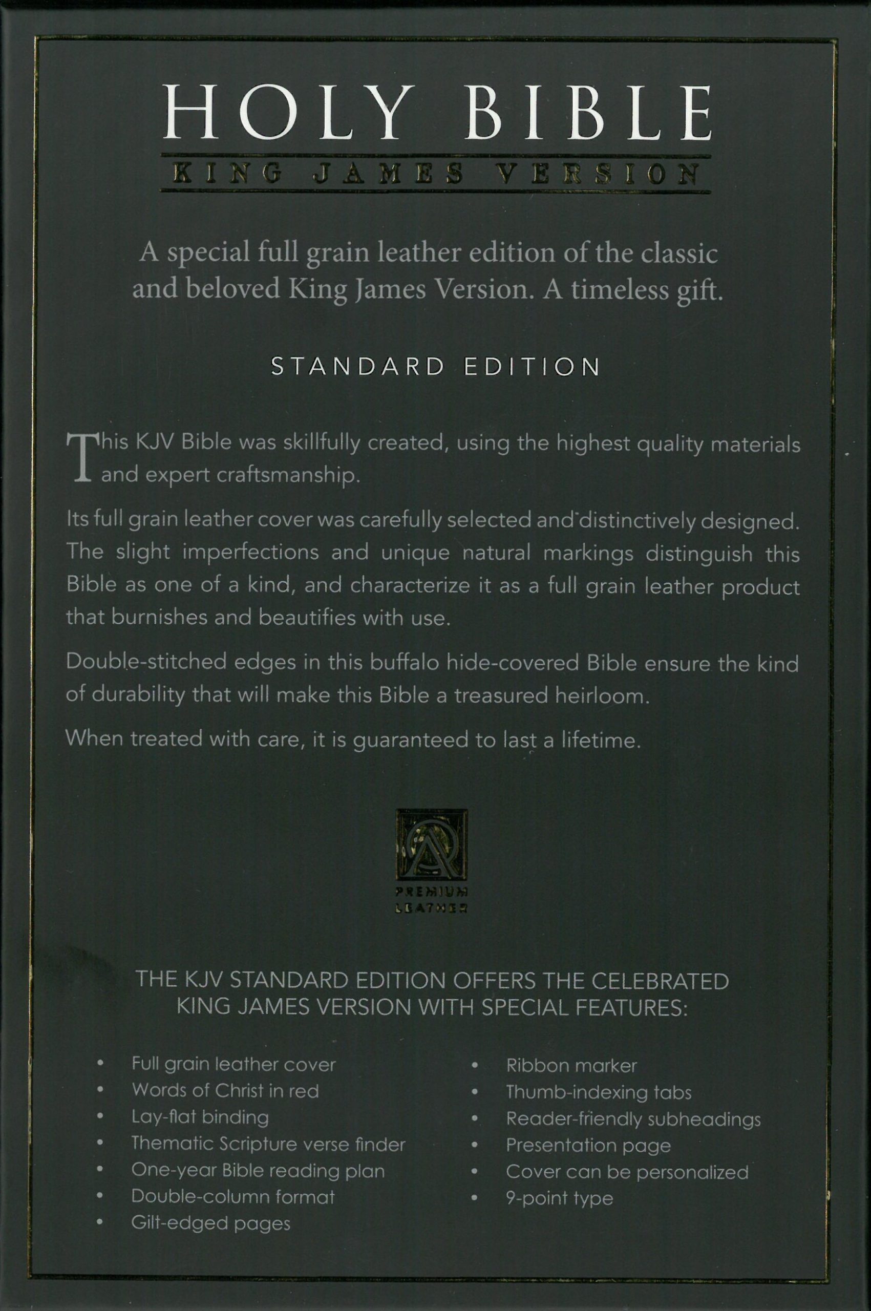 Genuine Leather. Black with a brown spine. Thumb indexed only. 9-point type, words of Christ in red, topical subheadings throughout the chapters, maps. A limited topical index is included. Page size is 8 5/16 x 5 1/4. Thickness is 1 1/16.