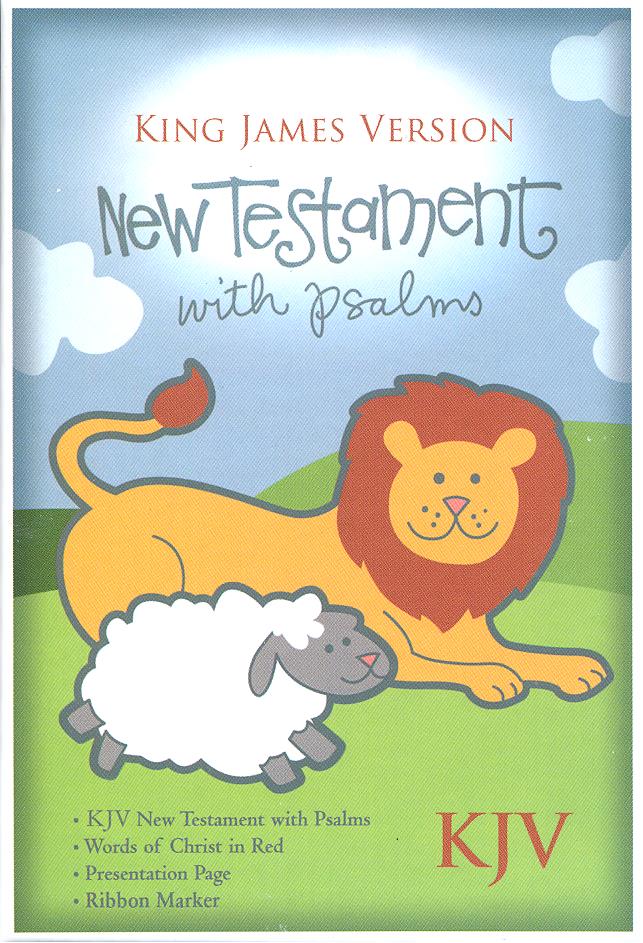 Words of Christ in red. Blue imitation leather binding. Page size is 2 3/4 x 4 1/4 in. KJV.