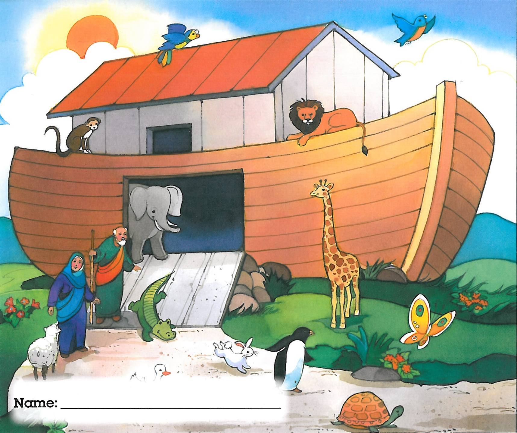 Individual attendance charts for Sunday school or Bible school use. Printed in full color. Ark on grassland with Noah at the entrance.