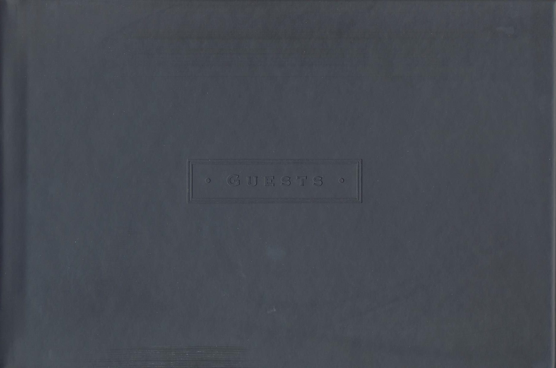 Elegant, soft, leather-touch cover in classic black. Ribbon bookmark, 96 lined pages with room for guest comments. 9 x 6 in.