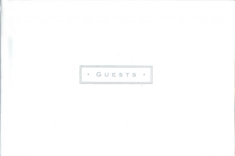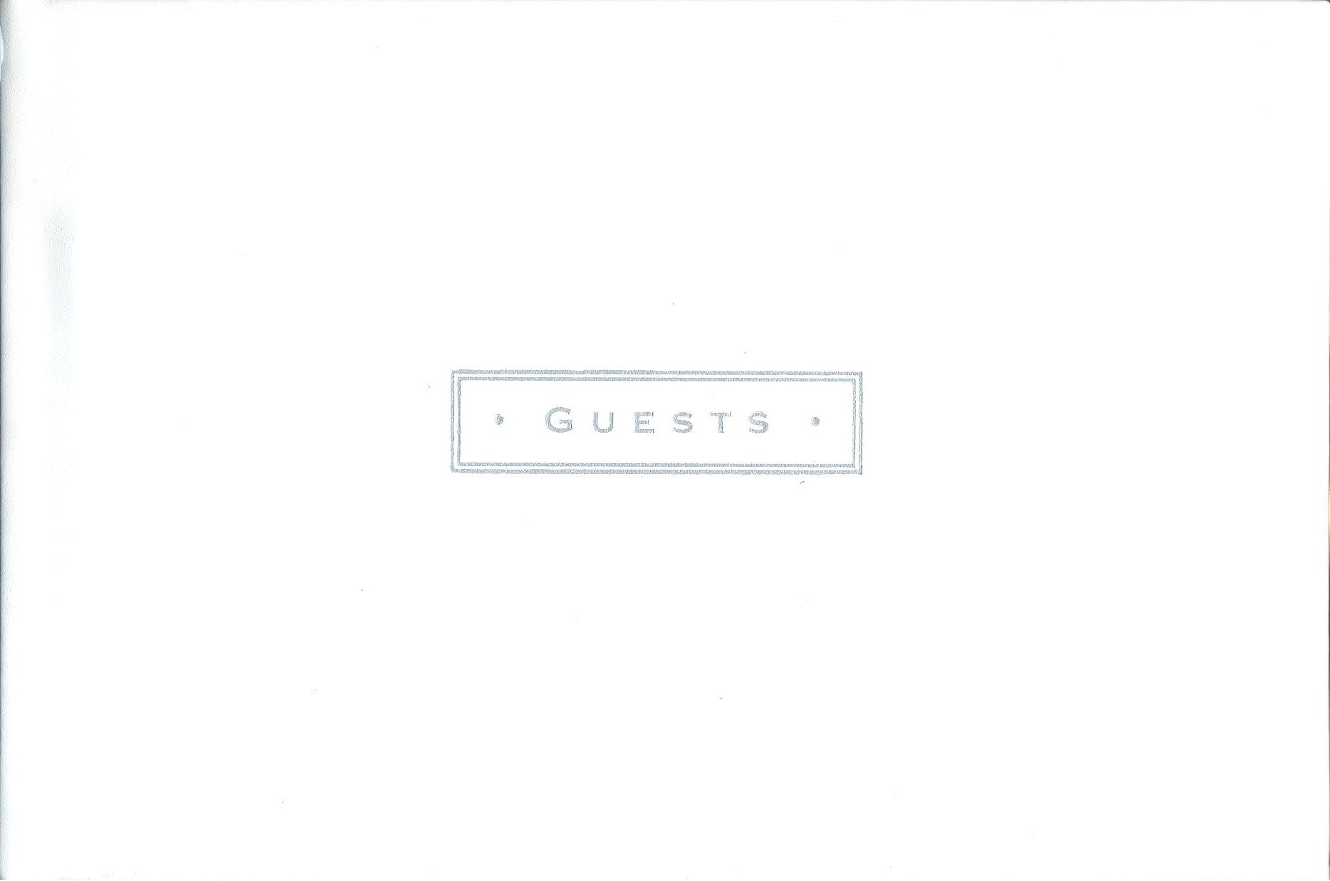 Elegant, soft, white bonded leather cover. Ribbon bookmark, 96 lined pages with room for guest comments. 9 x 6 in.