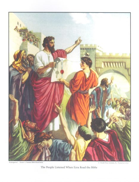 This is a reprint of the old Herald Press VBS series that was used in our congregations and missions until the 1980s. These pictures supplement the K1 book lessons about day and night, summer, food, the Bible, friends – God’s gifts to us.