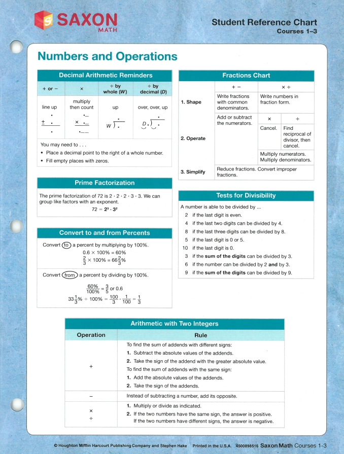 2108 edition. Reference chart for Courses 1, 2, & 3. Has handy references for Numbers and Operations, Measurement, Algebra, Proportionality, Datat Analysis and Probability, and Geometry. One per student.